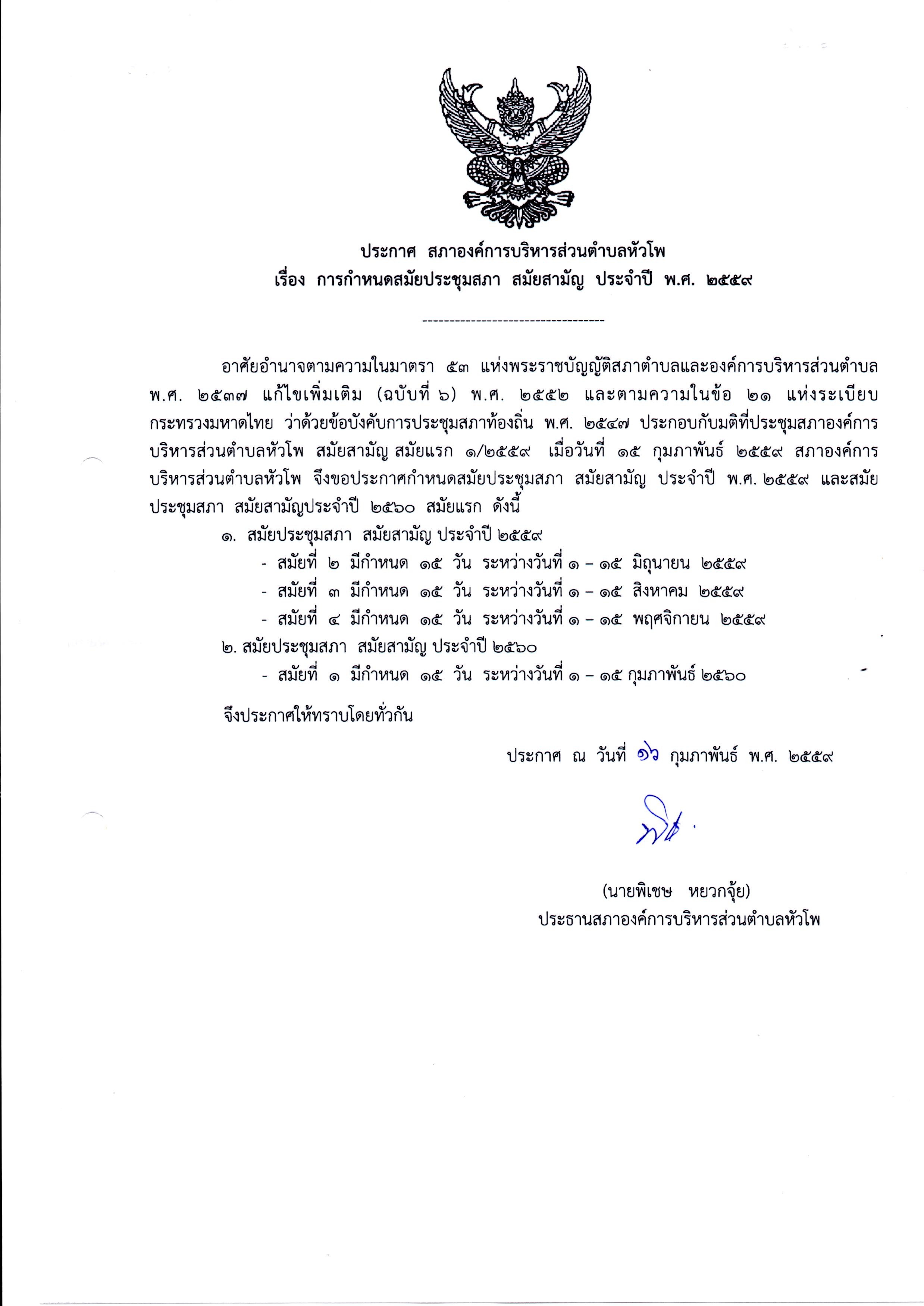 ประกาศ เรื่อง การมอบอำนาจของนายกองค์การบริหารส่วนตำบลหัวโพ
