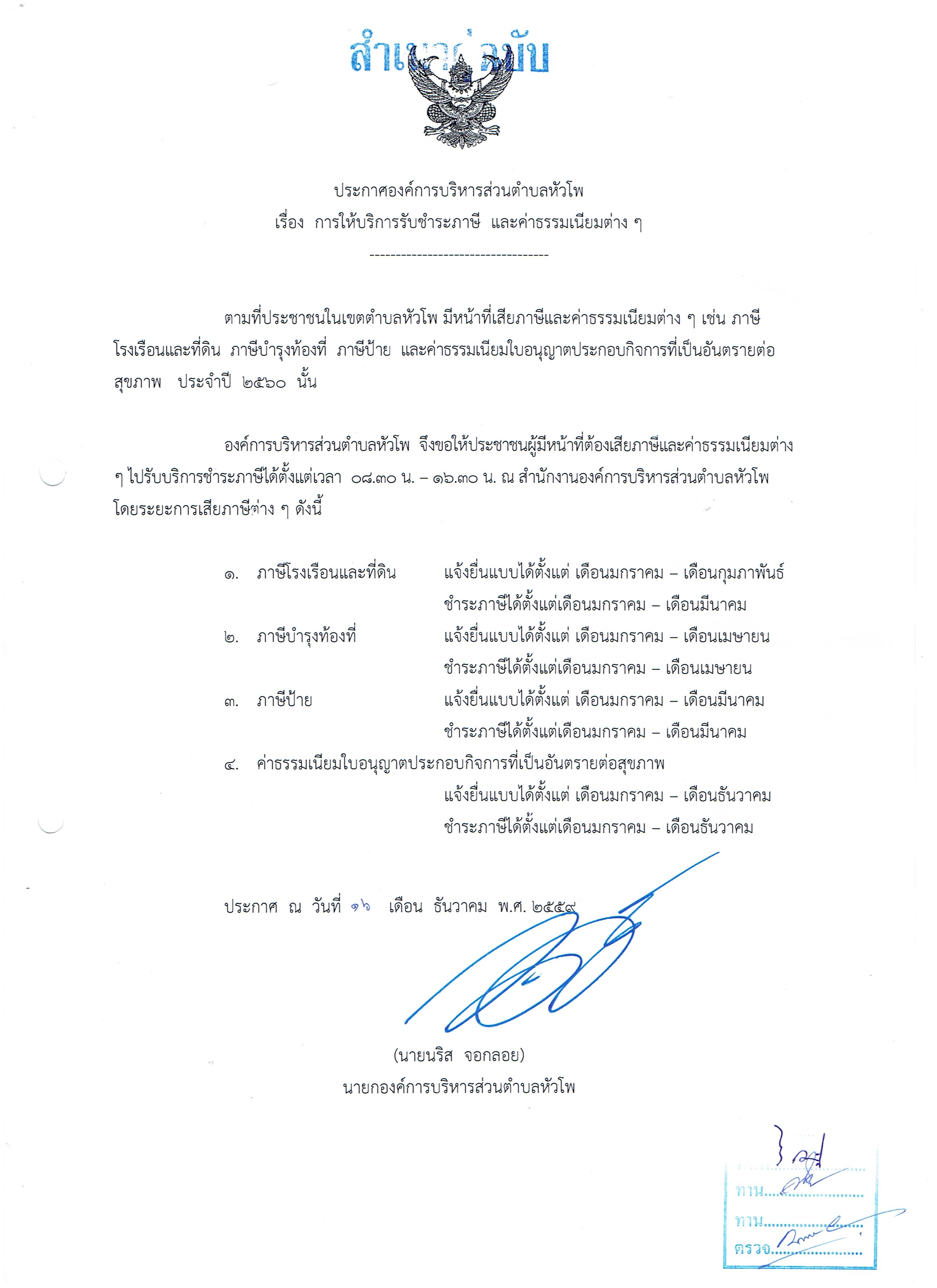 ช่องทางการติดต่อ องค์การบริหารส่วนตำบลหัวโพ